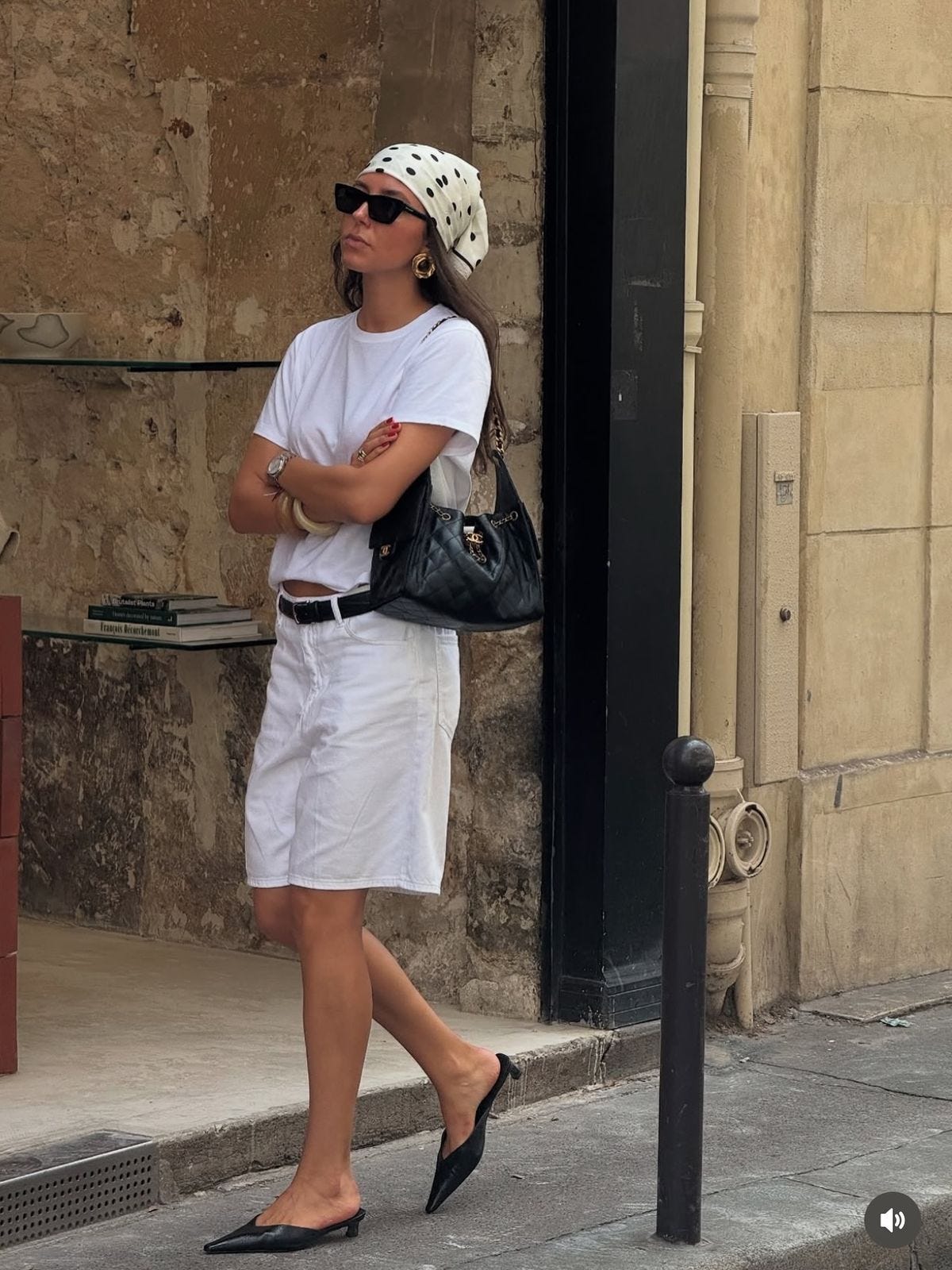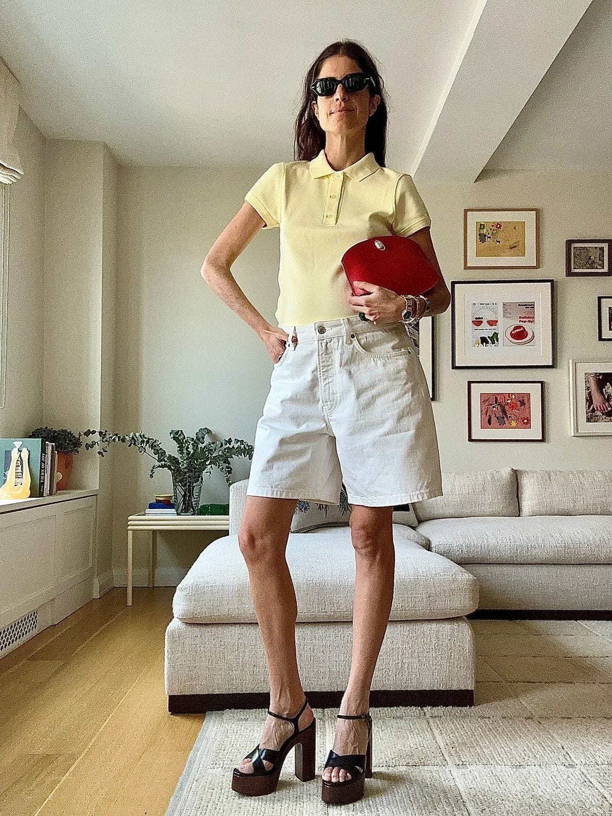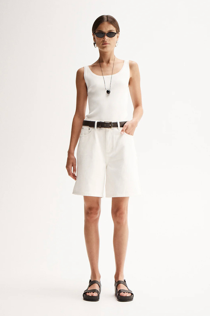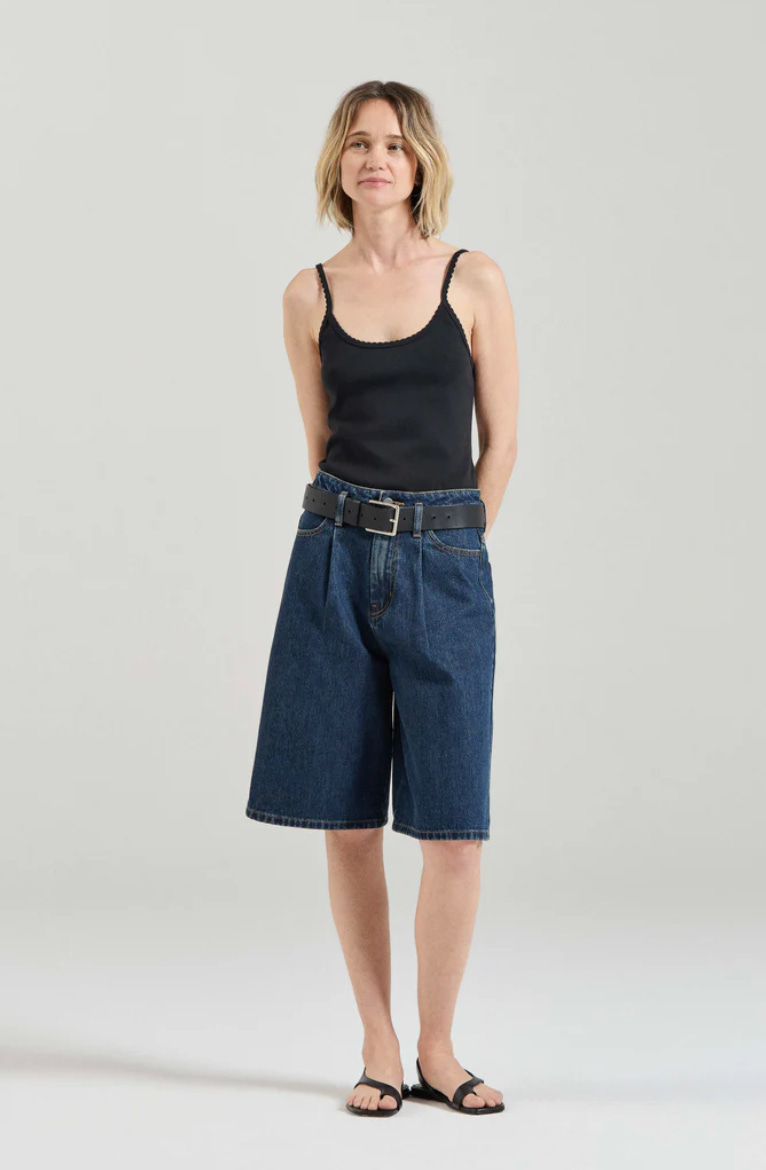 The pleated denim short. I think these are the style which cause the most trouble when it comes to styling, it’s the mix of pleats and length that scream 90s. But they can be so chic when the styling is done well. The easiest way to get it right here is to keep it pretty clean and minimal because the style itself is a bit of a moment. Because the pleats create a bit of a blouson, keeping the top fitted will stop you from feeling like you’re actually back in the 90s. Or wear a the top half cropped so that it just skims the top of the short.