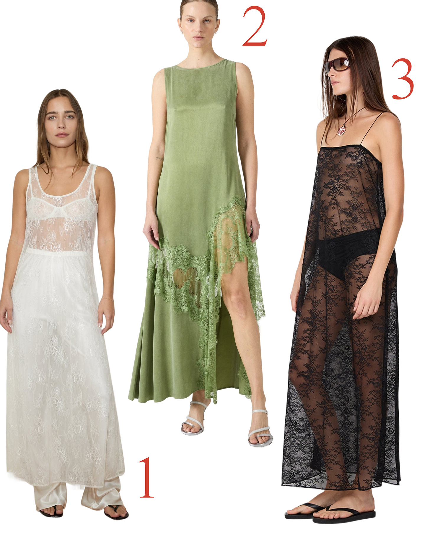 3 x lace trim maxi dresses