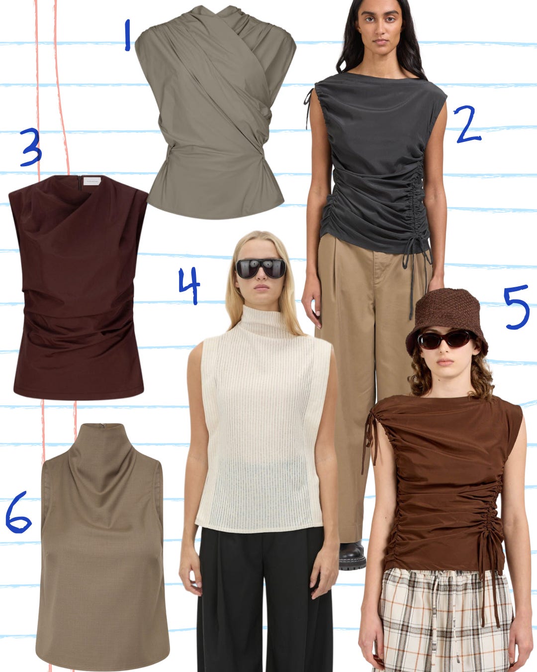 If we had a dollar for every time we were tasked with finding a non-boring work top, we’d have enough money to buy…well, one of the non-boring work tops below. This is such an overlooked category of your work wardrobe, but owning just a couple of options will give you excellent mileage for everything from client meetings to after-work drinks. With sleeveless styles (ideal for layering under light jackets), look for high necks and draping to add interest. That Harris Tapper number haunts our dreams.