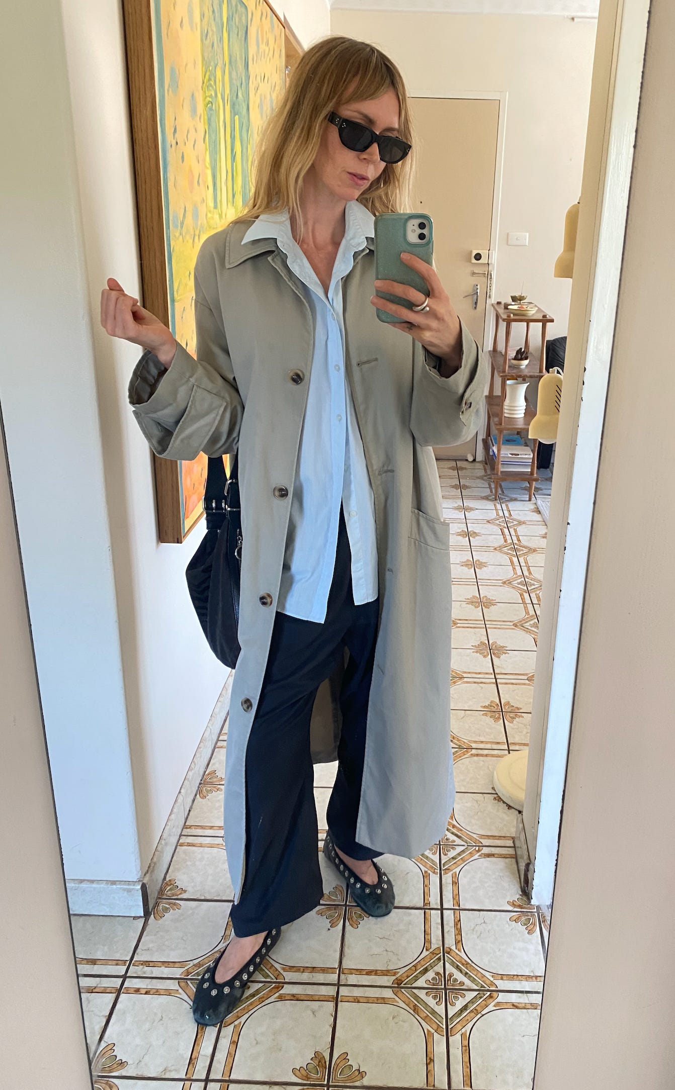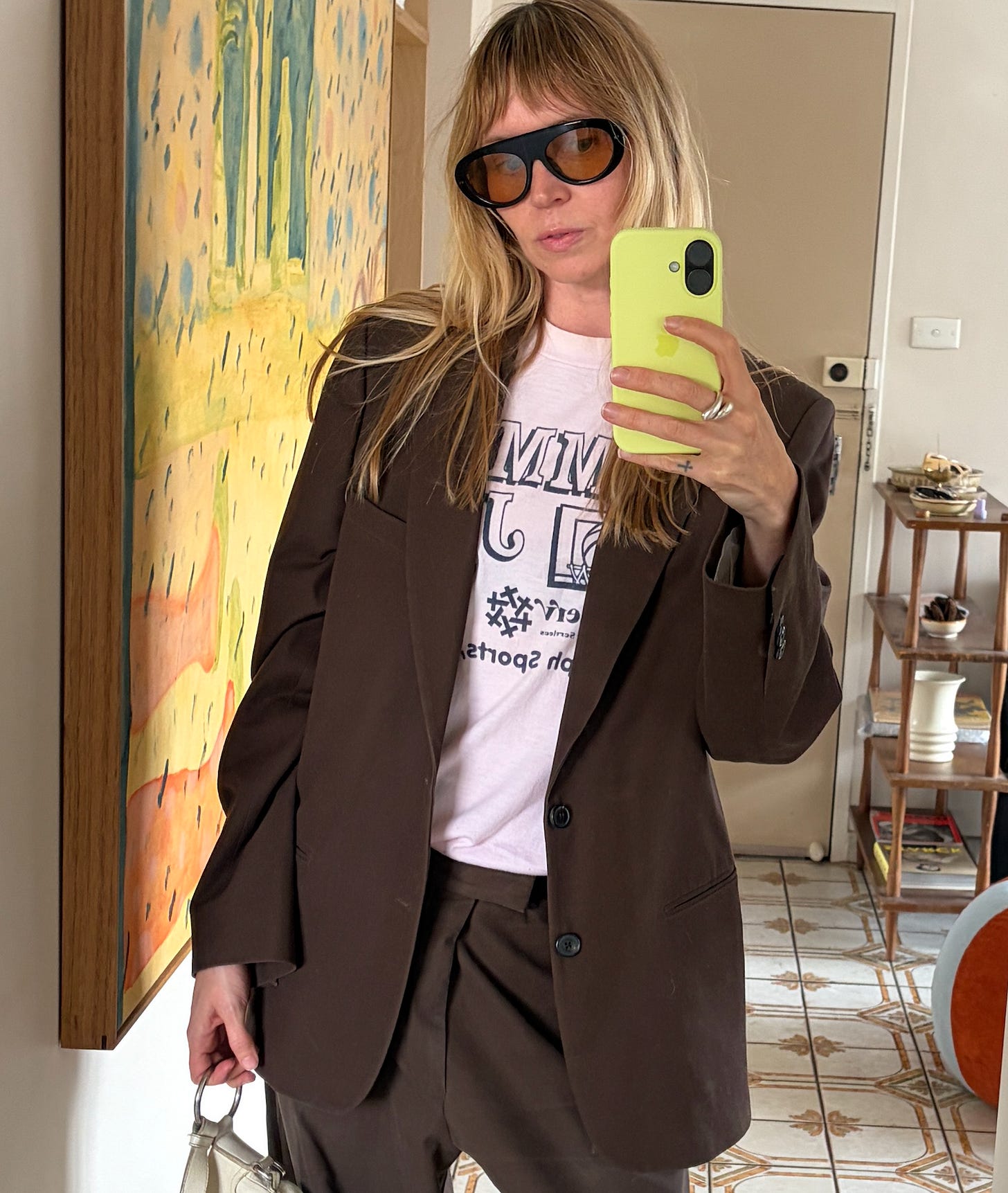 As the mum of a toddler, I don’t have much time to thoughtfully put outfits together or really feel out what I want to wear. There’s an interesting duality to how I dress day to day. Often, I’m dressed purely for functionality, in martial arts pants, an oversized men’s shirt and trench coat, zero makeup, with wet hair tucked under a cap. Other days, when I have a bit more time up my sleeve, my approach is far more considered: carefully selected pieces—usually pre-loved designer, vintage or thrifted finds. There’s something liberating in that versatility. I don’t feel pressure to be performative with what I wear, and when I’m time-poor, I find comfort in uniforms that are tried, tested and already chosen.