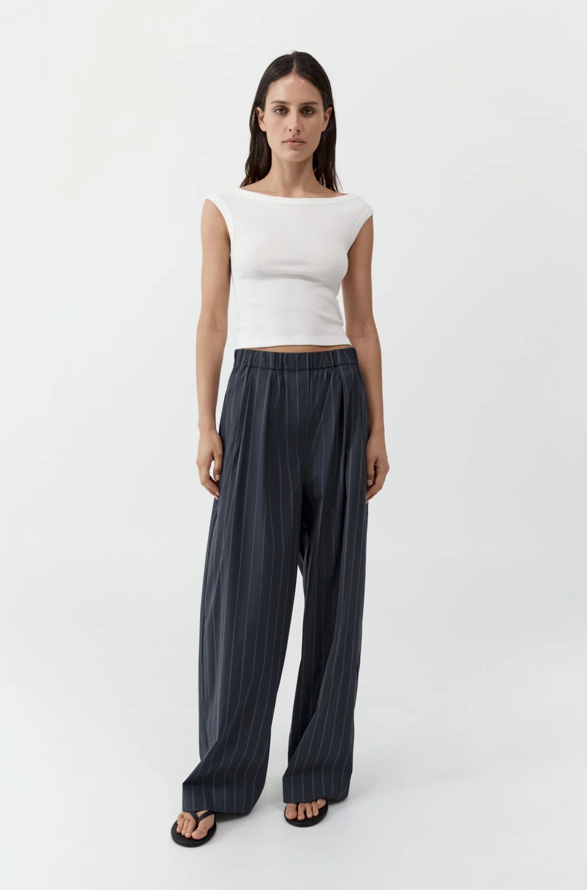 ST. AGNI / Stripe Relaxed Pleat Pants — $499