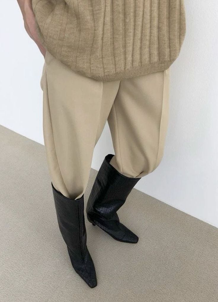 The perfect pair of all-day-boots is not super high on the necessity list right now (especially not at this price point) but BOY am I lusting over these boots. There are few items that hit quite like the perfect boot in completing an outfit. I can picture myself in multiple looks just dreaming about them right now: grasping at a midi skirt hem, peeking out under a slinky maxi, jeans and trousers tucked in. They feel equal parts classic and inoffensive, with interesting and statement. I want em’, but I shall not have them in this here season of life. But you definitely should.