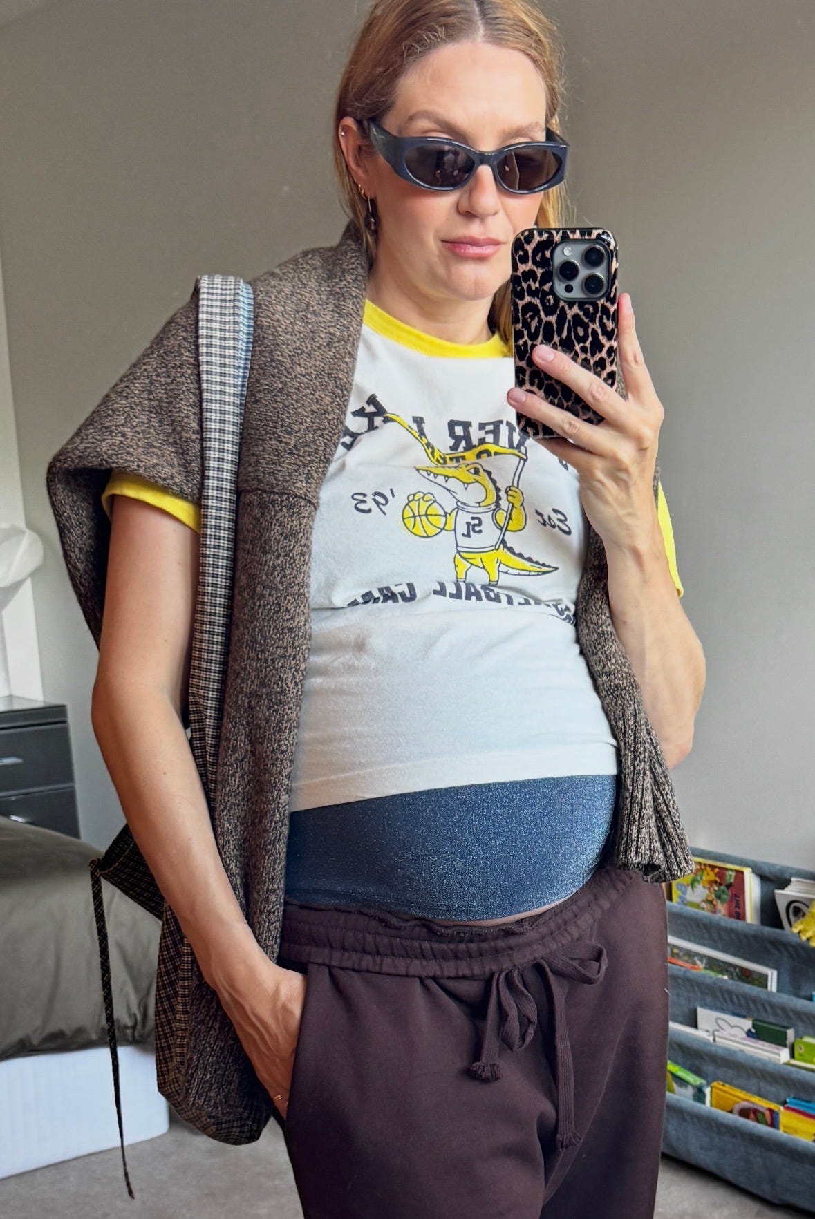 I see them with literally everything: oversize tees, slouchy sweaters, triple layered fine knits. These would also serve as a perfect preggo pant for the first and second trimester that you could wear afterwards.