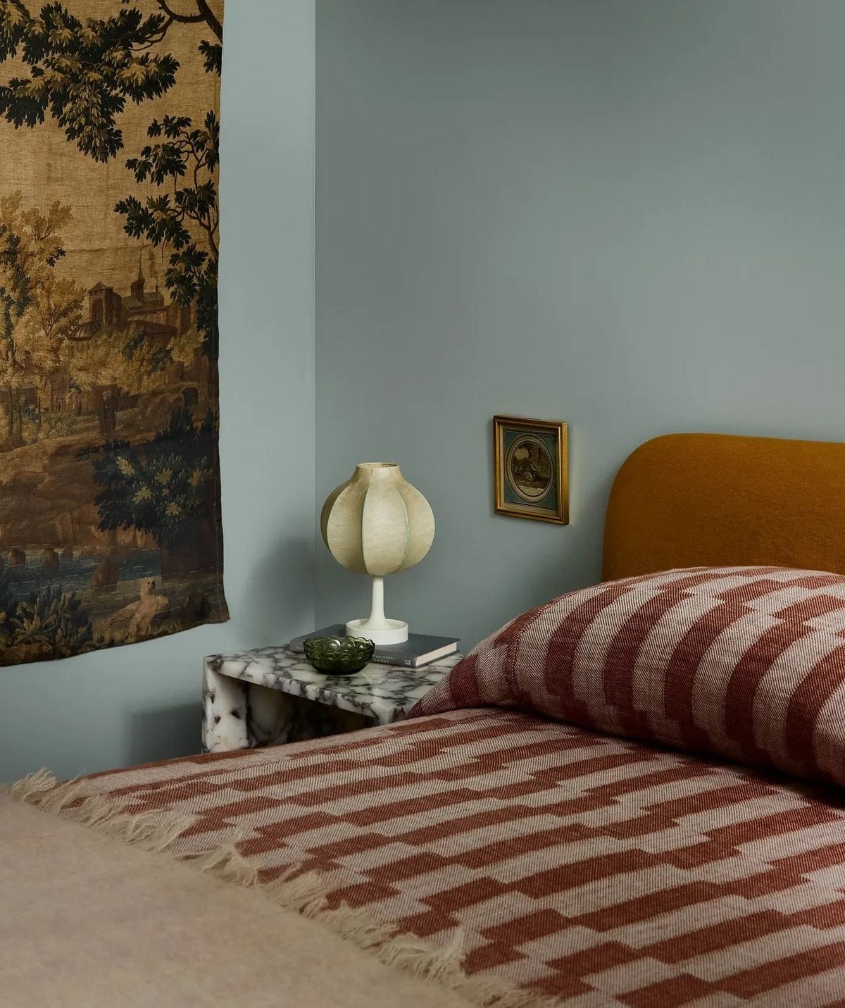 The nesting continues. I am always on the hunt for ultra affordable art for our walls and next to plastering them from top to tail with my boy Viv’s artwork, a printed tapestry is the best option. I love me a French verdure but I won’t be affording the real deal in this lifetime —so why not support a small family run business on Etsy. I’ve had a HK Living piece from House of Orange for years and i’m still obsessed with it, so inexpensive for a huge amount of wall real estate. I’ll be placing this one next to my bed just like so (below).