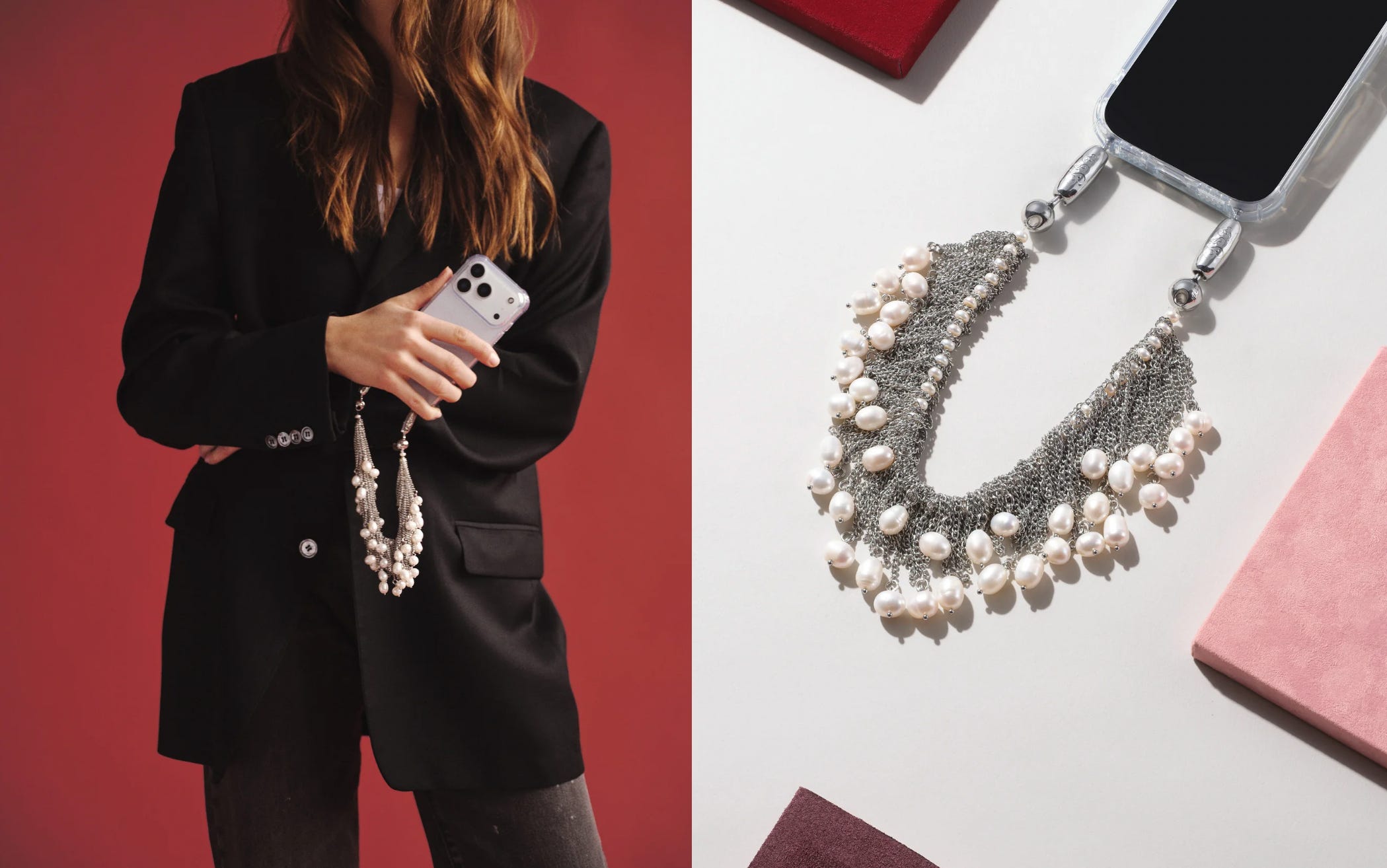 But — floor scrounging session aside — I am still stuck on the idea of zhuzhing up my phone when I’m putting more effort into your outfit, like when I’m going to an event or a dinner. And I think I’ve found the ultimate phone zhuzher in this incredible pearl-adorned chain tassel number from US-based Ossa (thank you, Zara, for introducing them to me). It looks sturdier than the aforementioned beaded strap number.
