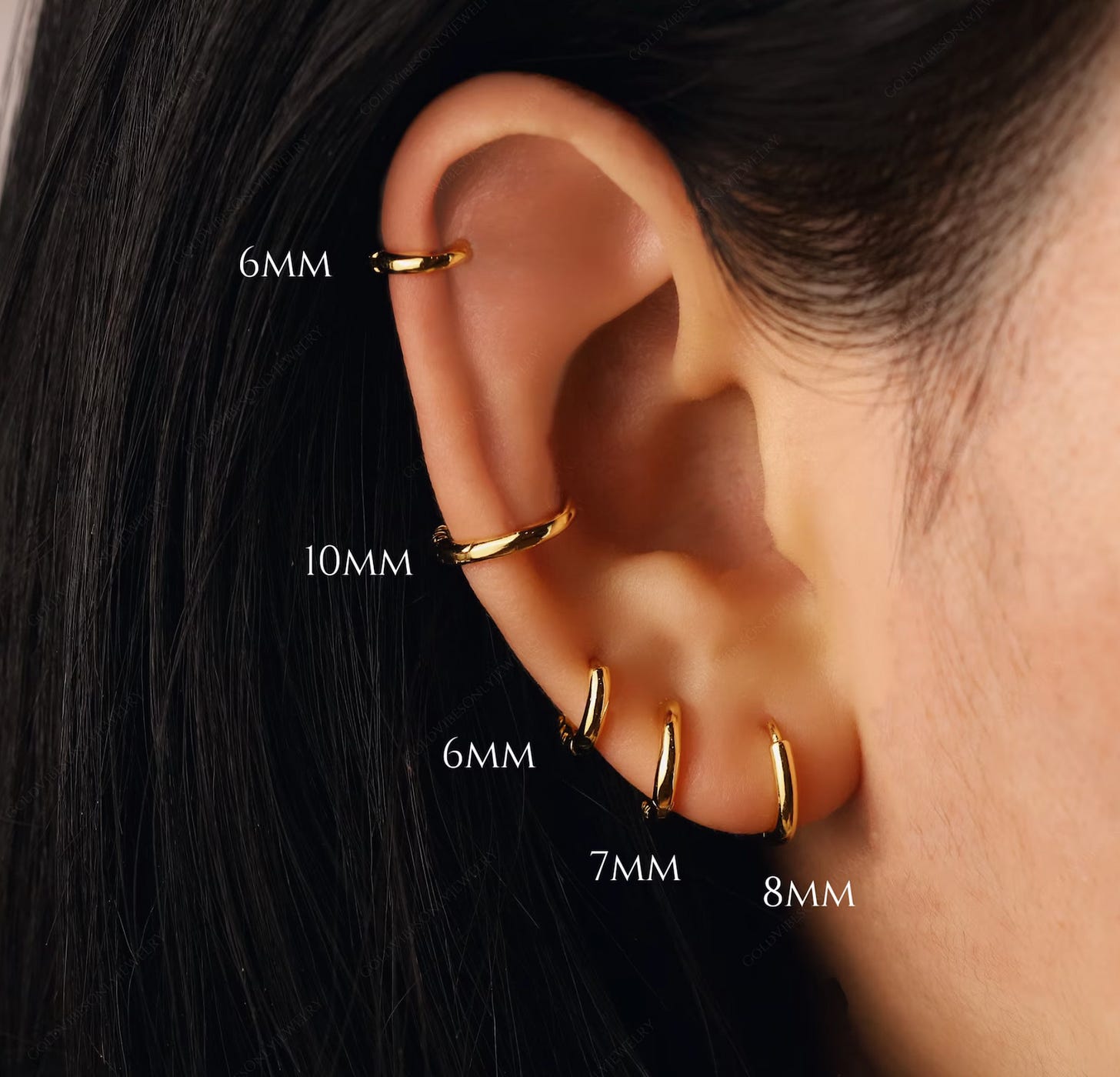 I’ve been craving a simplification of my ear stack. It took me the better part of 15 years to build the one I have, but start again I will. I don’t have the funds to buy solid gold at this point, and to be honest i’ve refused to buy anything other than solid for years becasue i’d found it to be such a huge waste of money. BUT! I’ve been trialing a gold filled pair over the last year and they’ve really held their own. So this is where i’ll be going to select a uniform collection of tight huggies for my many ear piercings.