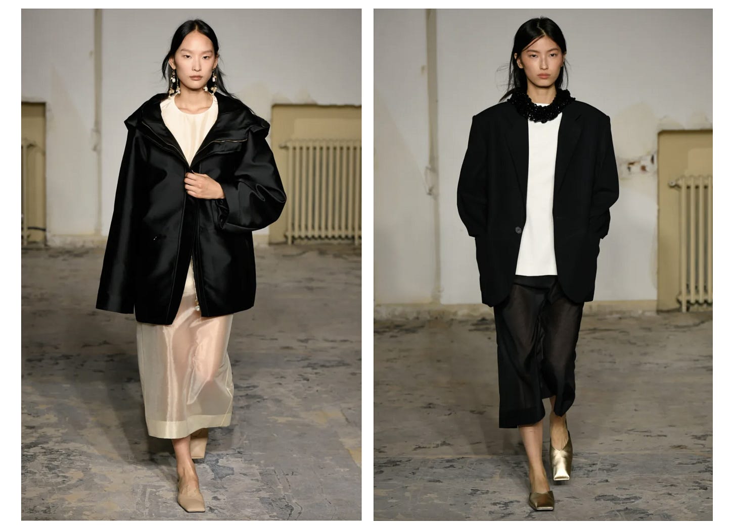 I am spying the dress as an option to wear to a relaxed winter wedding (probably with a black silk mini slip underneath), but can also see myself getting use out of this as a year-round styling layer — over swimmers in summer (god, this would feel soooo glamorous) or in winter with 30 denier black stockings, this tied around my waist, a brutalist-inspired hammered silver cuff (like this) and a generous spritzing of this energy.