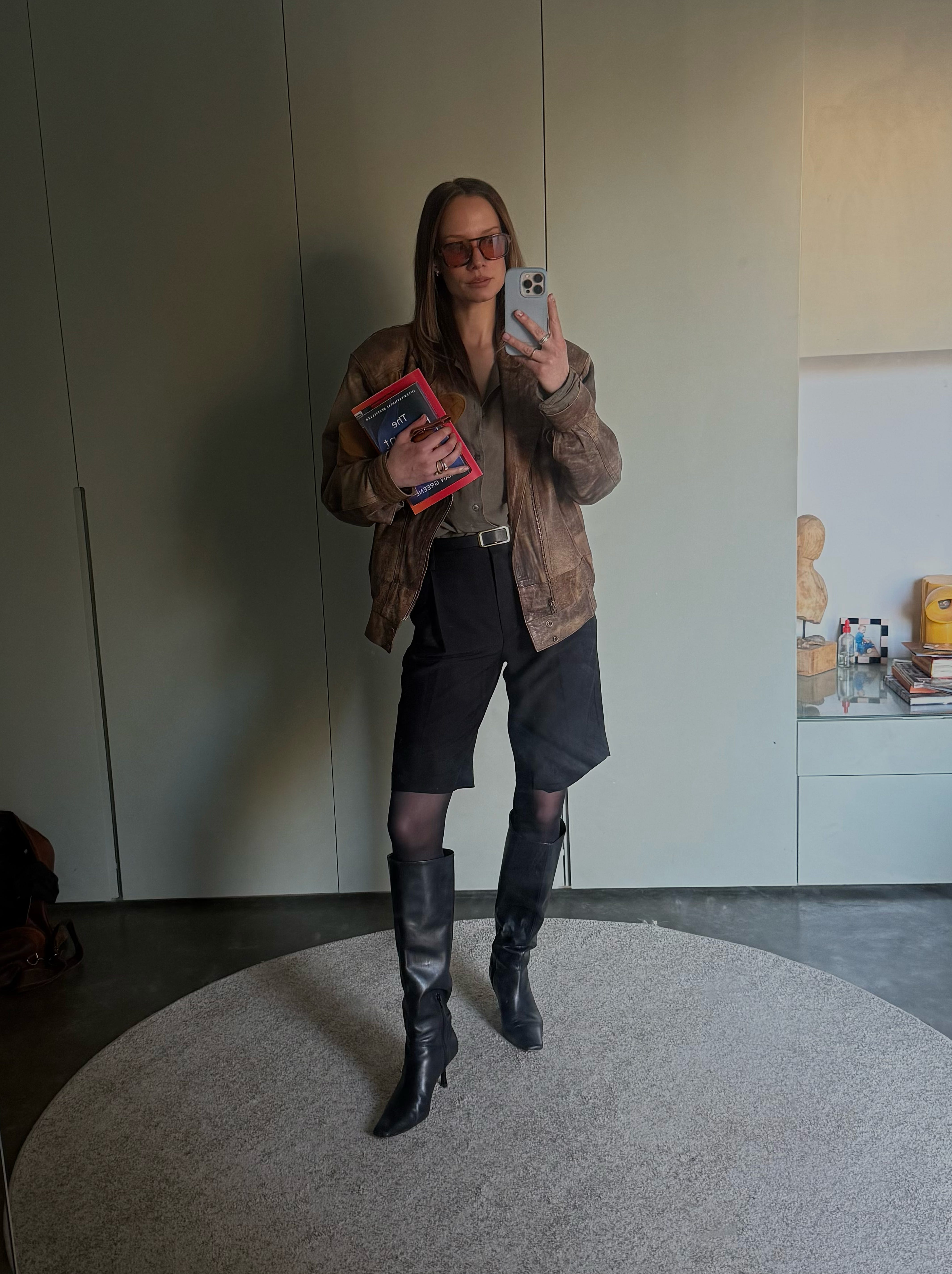 This is my most me look. I wear these shorts and this jacket so much. I bought these sunnies in an op shop or two dollar shop because I kept losing expensive glasses and I’ve now had them for years. Terrible quality, yet they demand to stay with me.