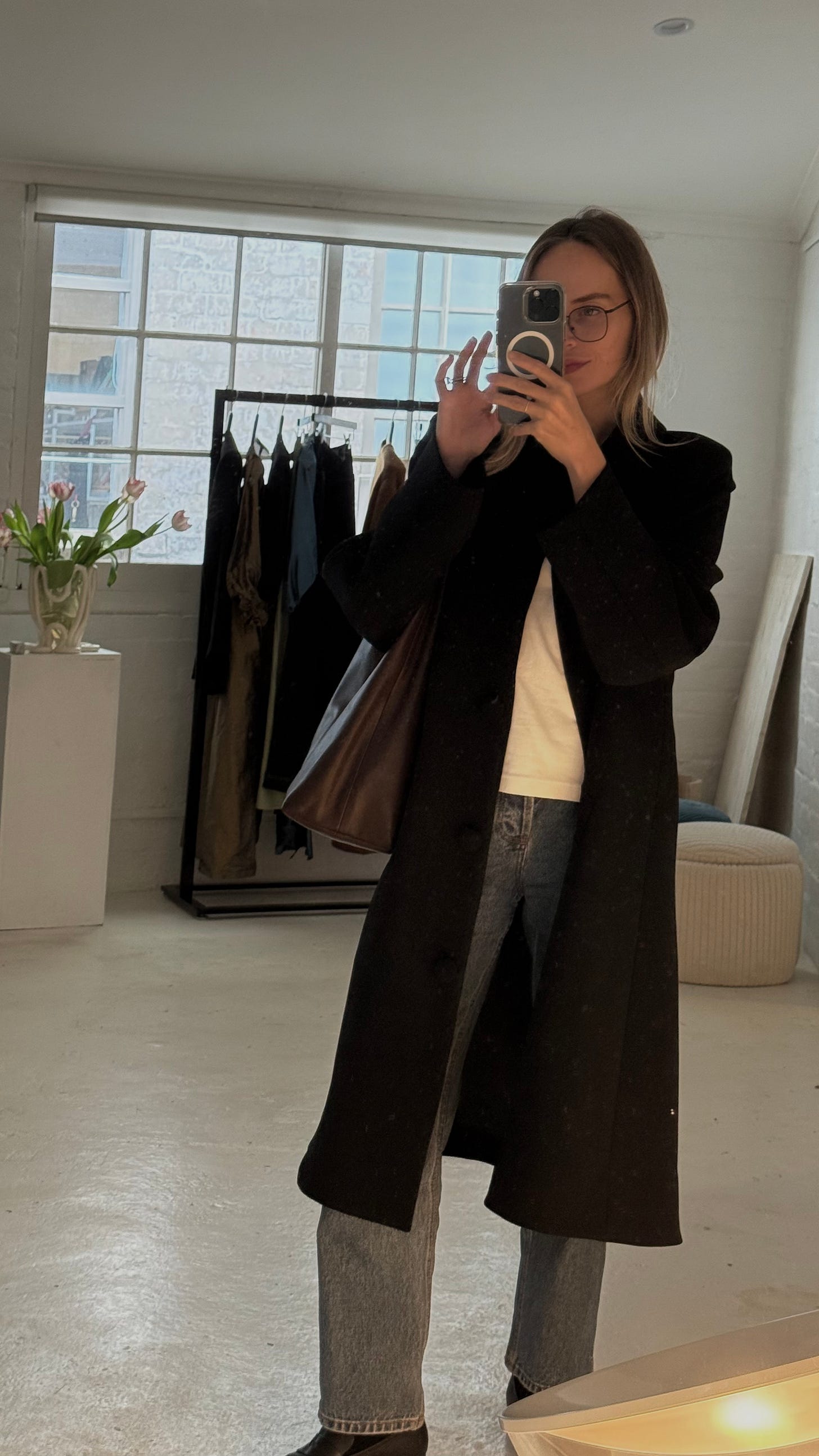 I wore that Uniqlo baby tee again. If you don’t own one, you need to go directly to Uniqlo right now (do not pass go). Paired it with my Zara jeans I’ve owned for at least 6 years – Zara really do make incredible jeans - along with a simple black coat because our Showroom Manager loves to blast the aircon in the office.