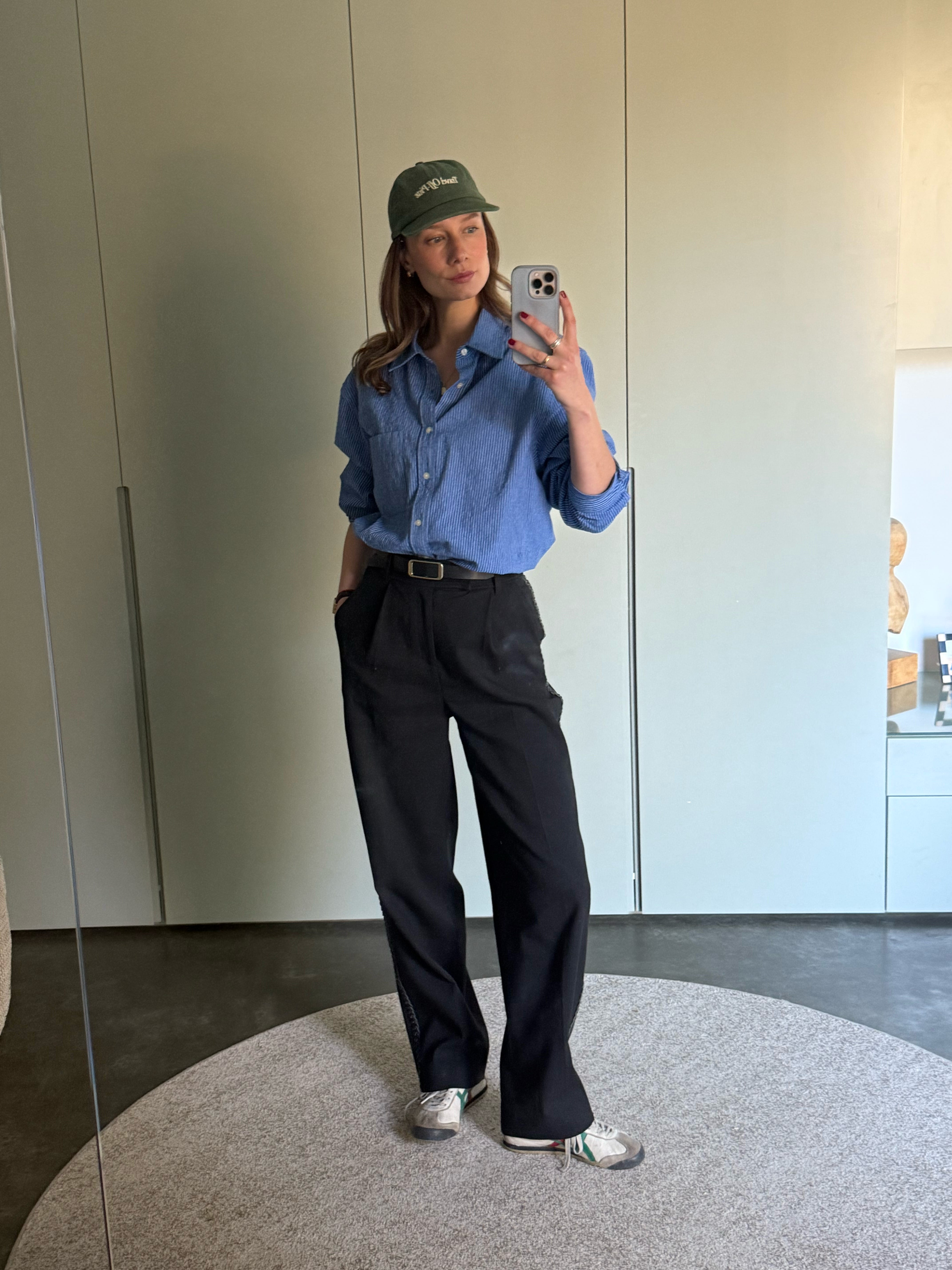 Needed happiness this day. A chill weekend outfit of running around. These pants always give joy. The shirt I bought for my husband at a vintage shop but it’s way too unstructured for him. I’ve worn it to death.